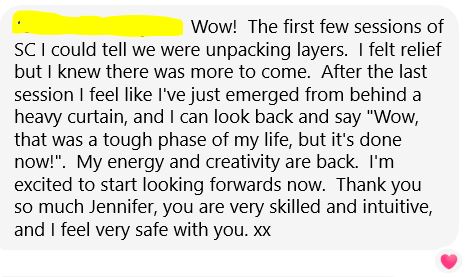 I will find where the energy is trapped in your body and through breathwork and meridian pressure (by you) we will release it.
